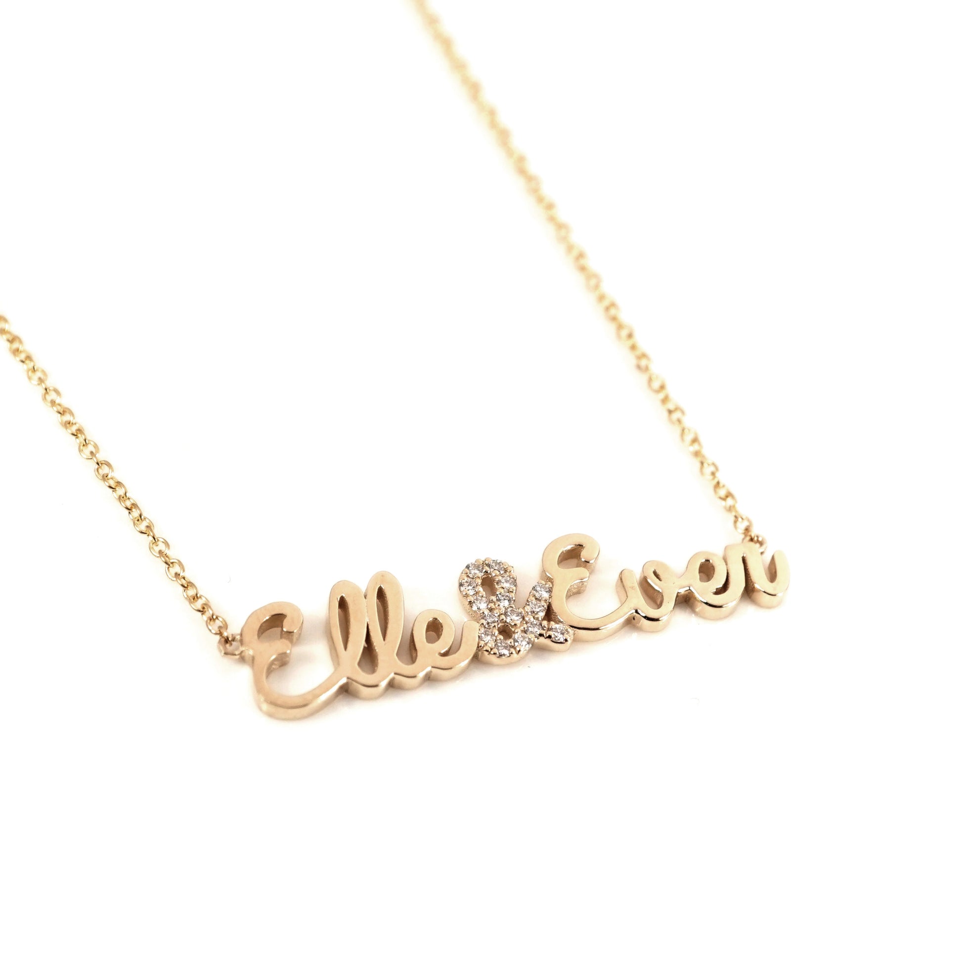 The prettiest most delicate name necklace anywhere on the world wide web, that is our promise. This necklace writes the name of two of your loved ones in our special hand written font using gold and white diamonds. The necklace comes in 18 inches long with two shortening rings which allows you to wear the necklace at different lengths.