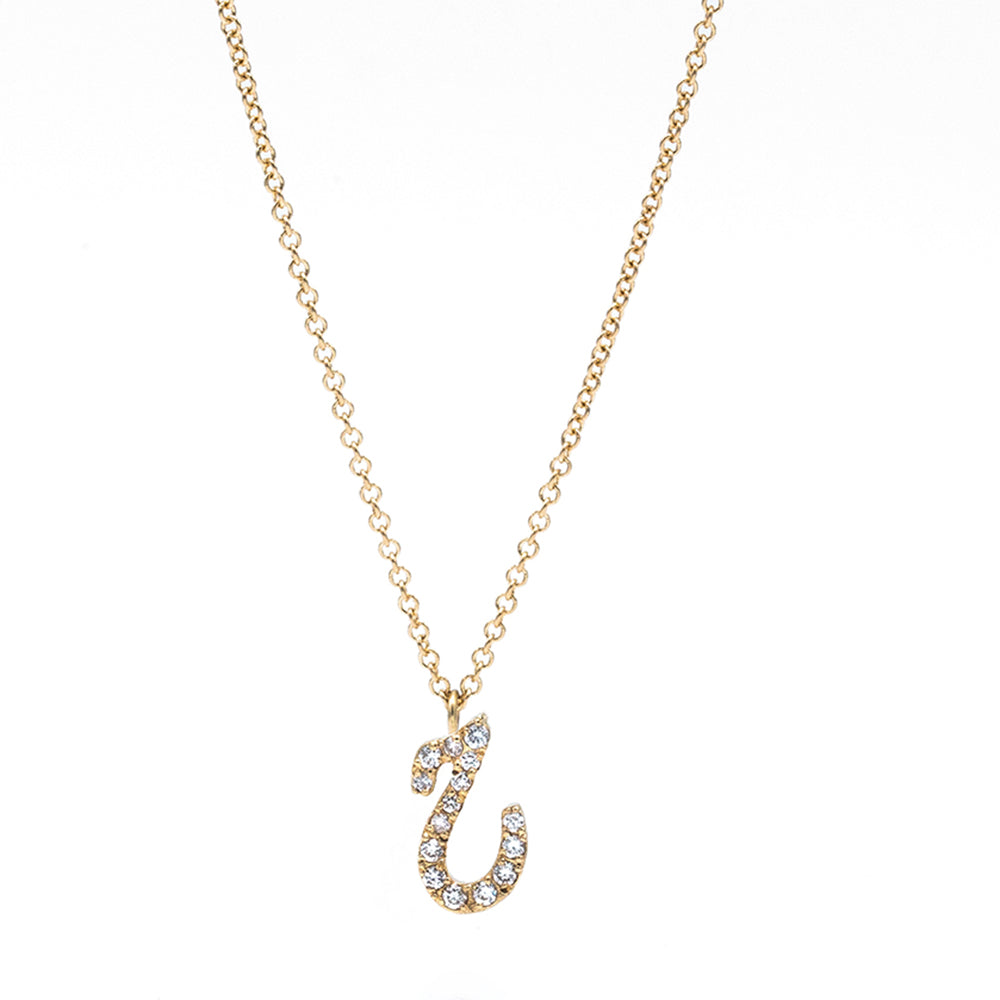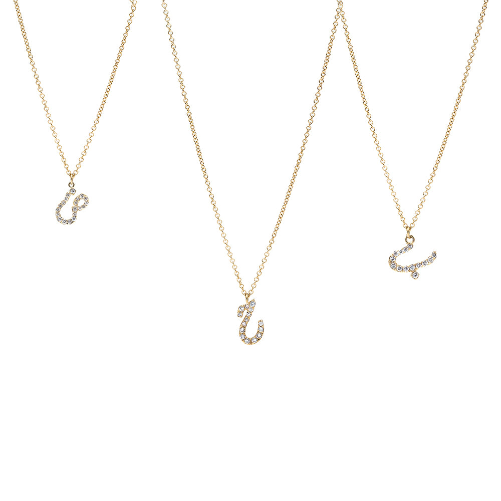 - This necklace features a delicate Persian/Arabic initial pendant encrusted with diamonds