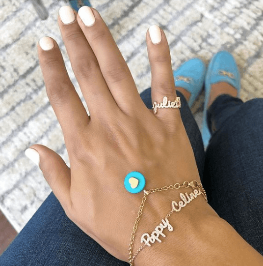 - This stunning ring features two names in full pave of white diamonds with two gold ampersand